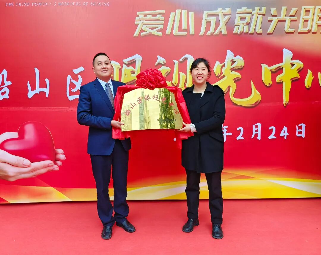 船山区人民政府副区长胡茜为船山区眼视光中心授牌,遂宁市第三人民医院党委副书记、院长康东接牌。