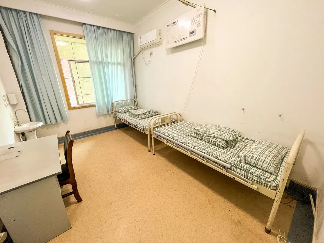 我院将专家接待室临时调整为抗疫工作人员休息区,保证他们能够得到及时的休整,避免过度劳累。休息区内除必备的床上用品外,还设有淋浴洗漱用品、生活用品等,让"大白"们在这里得到真正的放松与休息。
