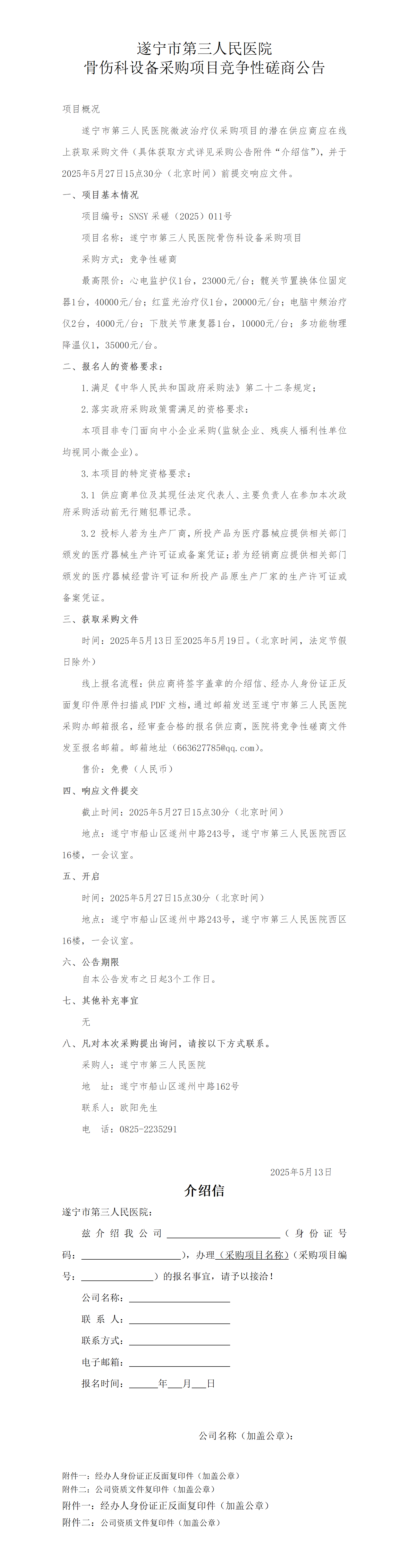 遂宁市第三人民医院骨伤科设备采购项目采购公告
