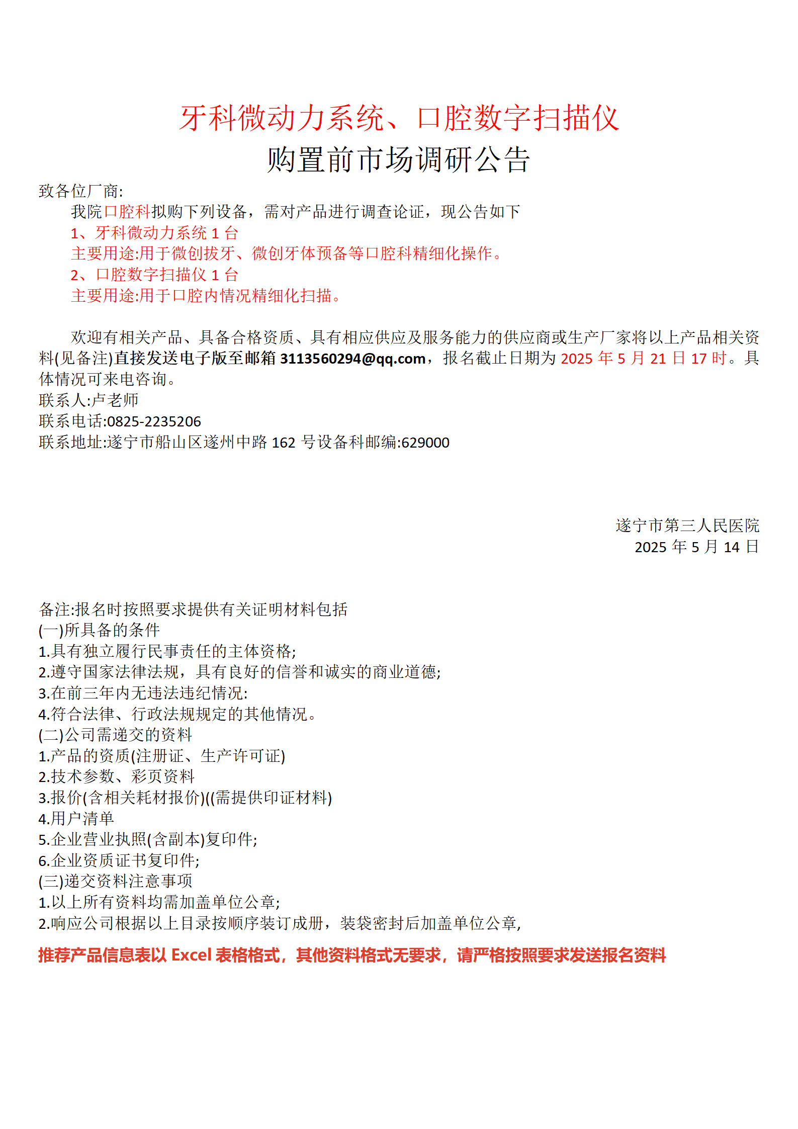 牙科微动力系统、口腔数字扫描仪 购置前市场调研公告