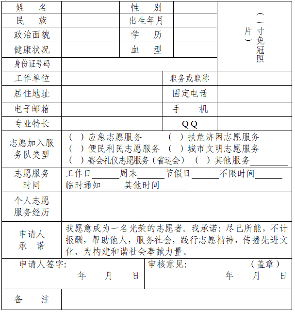 遂宁市船山区志愿者登记表
